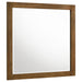 • Warm brown dresser mirror features a one-inch beveled edge and stout frame profile