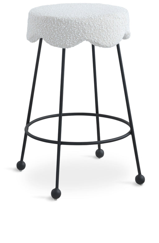 Give your kitchen or dining area a contemporary makeover with this Avalon cream boucle fabric counter stool. With its matte iron frame and rich bou...
