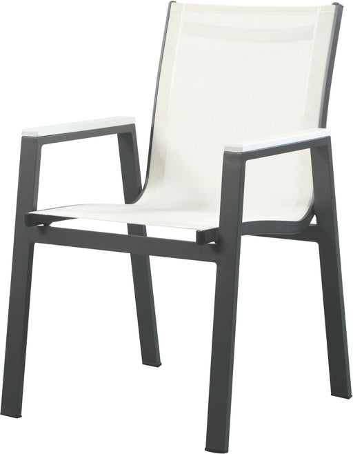 Meridian FurnitureNizuc Mesh Waterproof Fabric Outdoor Patio Aluminum Mesh Dining Arm Chair Nizuc - Outdoor Patio Dining Arm Chair With White Frame And Natural Arms ...