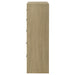 • Chest of drawers in light oak stacks five drawers for vertical bedroom storage and order