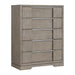 Introducing the Kelis 5-Drawer Chest in Grey, a contemporary collection that combines modern design with functionality. Featuring an elegant grey color, this chest is perfect for those looking to create a sleek and sophisticated atmosphere. It showcases inset panel fronts, adding visual interest and depth to the furniture. Silver metal handles add a subtle touch of modern, while the top drawer is lined with grey felt for added protection of your belongings. To ensure longevity and durability, cedar-lined bottom drawer is included, while a dust-proofing bottom layer further guarantees that your items stay clean and well-maintained. Experience contemporary elegance and practicality with the Kelis Chest in Grey.