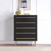 Turn to the Marisol chest to make a big impression in your modern bedroom. This contemporary piece looks great on its own or paired with other items in the Marisol collection. Eye-catchingly elegant, this piece features a rich finish with brushed metal legs and handle for an up-to-the-minute vibe in your bedroom sanctuary. Minimalist hardware adds functionality without overpowering the unit. Wood construction adds to its durable design.