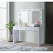 The Ariana 2Pc Vanity Set is a great piece to add your home to keep everything in one place. Makeup, hair tools, jewelry, and more all right here in the Ariana Vanity 2PC Set. Made of manufactured woods and clean lines, it gives a symmetrical silhouette. The set features three drawers for adequate storage. The Ariana Vanity Set also includes one power outlet, making it ideal for touching up your hair or even working on your laptop.