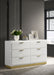 • Linear dresser drawer handles and a matching base complement its fresh, easy design