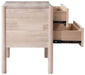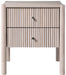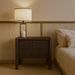 The Kivo solid wood nightstand in a rich finish is the perfect companion to its matching bed. Vertical slatted drawer fronts mirror the same mid-century design details, creating a cohesive and refined bedroom set. With two spacious drawers and a sturdy, solid wood build, it balances style with everyday function.