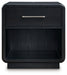 Inspired by art deco design, this softly shaped nightstand makes a lasting impression in a simply stunning way. Its magnificent curved silhouette is enhanced by a rich layered black finish on the textured wood grain surface. Complete with an LED nightlight, AC power and two USB ports, this is the statement piece you’ve been dreaming of to elevate your contemporary inner sanctum.