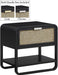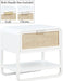 Add a natural touch to your bedroom space with this Sage wood veneer night stand from Meridian Furniture. This rectangular night stand features rich ash wood veneer with a finish, ensuring it complements your existing bedroom decor. A natural cane drawer front gives a unique touch to this piece, as well as providing you with plenty of storage space. A shelf beneath the drawer provides additional storage space if needed.