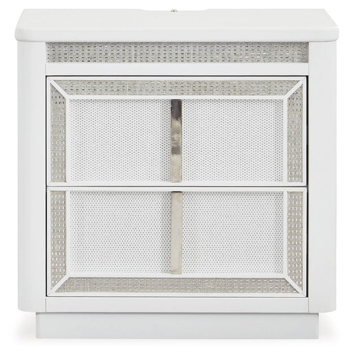 Signature Design by Ashley®This nightstand is a showstopper, bringing a touch of modern glamour to your sanctuary. A sleek white finish and inset glitter accents create a sop...