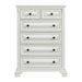 The Bridgestone 6-Drawer Chest is the perfect addition to any bedroom. This case piece is designed with beautiful beveled design throughout, adding a touch of elegance to your decor. The finish features faint distressing for a unique look, while the metal knob hardware adds a contrasting touch. The top drawers are lined with felt to protect delicate items, while the bottom drawer features cedar veneer for added durability. With ball bearing drawer guides and an anti-tipping kit included, this chest is as functional as it is stylish. Bring sophistication and organization to your bedroom with this piece from the Bridgestone collection.