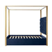 Unveiling this modern upholstered canopy bed, a seamless blend of elegance and comfort. Crafted with an upholstered tufted back, it transforms your space into a realm of opulence. This contemporary piece effortlessly melds with diverse styles, seamlessly bridging modern, traditional, and even industrial furniture decor. Meticulously crafted, the champagne metal frame elevates the bed's visual allure and ensures robust support and enduring durability. Experience the irresistible allure of private space as you nestle beneath the canopy's gentle embrace. Enrich your nights and awaken your senses to a realm of relaxation, where every moment becomes an escape into pure tranquility.