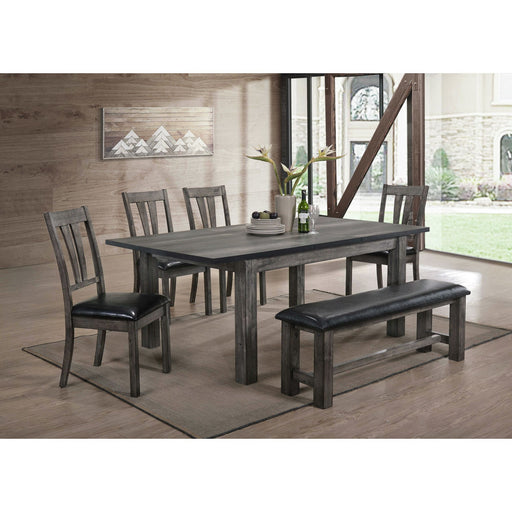 Elements InternationalStone - 6 Piece Dining Set Table & 4 Wooden Swril Back Side Chairs & Pew Bench - Charcoal