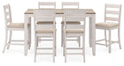 Skempton - Counter Height Dining Table and Bar Stools (Set of 7) - White / Light Brown
