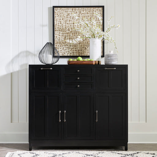 Take entertaining to the next level with the impressive style and storage presented in this contemporary server. Three doors open to reveal interio...