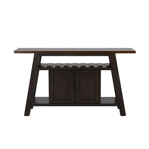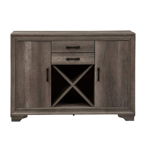 Liberty FurnitureNewport - ServerProduct Features Sliding Doors Inset Black Finger Groove Hardware 6 Bottle Wine Storage Large Open Shelf 1 Fixed Shelf Behind Each ...