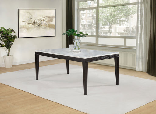 CoasterRectangular dining table brings a clean, tailored presence to the dining room with a crisp white marble top and dark base contrast. Its broad surfa...
