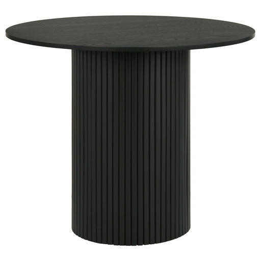 CoasterRound dining table showcases a thick top and a fluted pedestal base that adds subtle texture while keeping the silhouette clean. Built with rubberw...