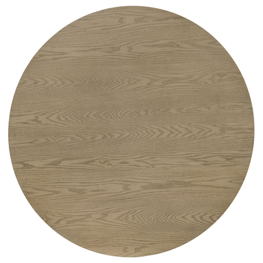 CoasterRound pedestal dining table anchors meals with a thick, clean-edged top and a sculpted base that feels substantial without visual clutter. Ash vene...
