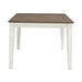Al Fresco or dining in the outdoors brings to mind an open air natural feel. Al Fresco Casual Dining is a fresh approach to a casual rustic style. Two tone finish with tops of the tables in Graphite and the base in a Whitestone. Tops feature planked design with round/square peg accents. Tapered block legs carry the casual rustic theme of the group.