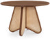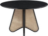 Give your dining space a traditional makeover with this Butterfly dining table from Meridian Furniture. Its solid rubber wood frame features a sleek walnut finish that complements the dining chairs. Its natural cane base is reminiscent of a mid-century design, so you can relax in style as you dine, and making this piece right at home in any living space.