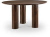 Dinner guests can't help but be impressed when they're seated at this Colosseum dining table. Its rich finish and oak veneer, crafted from a mix of solid wood and MDF, evoke mid-century modern charm. The distinctive three-column base and round top ensure ample legroom and elbow room, making it perfect for lively gatherings and intimate dinners alike. With a blend of sophistication and functionality, this table promises to be the centerpiece of memorable dining experiences in your home.