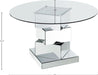 Crank up the contemporary vibe in your space with this Haven Chrome Dining Table. This table has a stacked geometric design featuring multiple squares resting atop each other for a look that wows from every angle. Dinner guests will marvel at the exceptionally modern look of this work of art disguised as a dining table, and you can pair it with your choice of chairs to complete the look. The glass top allows the sculptural quality of the base to shine through, and the base is mirrored for added beauty as it reflects light throughout your room.