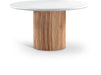 Modernize your sapce with the Sanremo finished concrete indoor/outdoor dining table makes a striking statement with its sleek white concrete top and fluted base in a natural wood finish. Designed to balance elegance and durability, this piece seamlessly adapts to versatile areas and designs. Its Art Deco-inspired silhouette adds a touch of sophistication, creating the perfect setting for dining and entertaining.