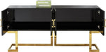 Ensure the items you need at mealtime are close at hand with this handsome Beth Sideboard Buffet from Meridian Furniture. This indispensable piece is a modern marvel with its contemporary design featuring lacquer with a stainless steel trim and base. Open the doors to reveal a large area that's suitable for storing everything from serving bowls to out-of-season dinnerware.
