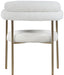 Comfort comes to mealtime with this Blake boucle fabric dining chair. This lovely chair is just the right choice for your modern dining room, with its curved back that cradles you in comfort while you wine and dine the night away. A thickly padded soft boucle fabric seat lends this chair a sleek, upscale look while ensuring its ongoing performance and beauty. The chair's brushed brass finish protects its all-metal iron frame.