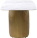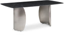 Make even the most casual meals an elegant affair when guests gather around this Niya dining table. This handsome table is part art, part dining room must-have, with its elegant yet durable marble-look sintered stone top and its brushed curve bases. Diners have loads of elbow room at this large dining table, so they stay cozy from appetizers through dessert. Add the chairs of your choice for a complete dining room rehab in an instant.