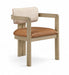 Ravina - Vegan Leather and Linen Textured Fabric Upholstered Dining Chair (Set of 2) - Cognac / Stained Natural