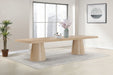 Get modern in your dining room with this Tavolo oak dining table. Crafted from MDF with oak veneer, this durable table is sure to serve you while you enjoy thousands of meals throughout the years. Rich oak finish makes a bold statement when paired with existing furniture. A 3-inch table top ensures you have a sturdy surface to enjoy your meals on. Two table leaves are included so you can adjust the table's length as needed.