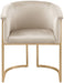 Enjoy body-hugging comfort at every meal with this Tierra velvet dining chair. Rich velvet covers the seat, arms and back of this comfortable yet beautiful chair. The frame is made from durable metal for resilient, long-lasting use, and it features a brushed brass finish for a look that's both modern and elegant. Pair it with the table of your choice for a modern look in your dining room space.