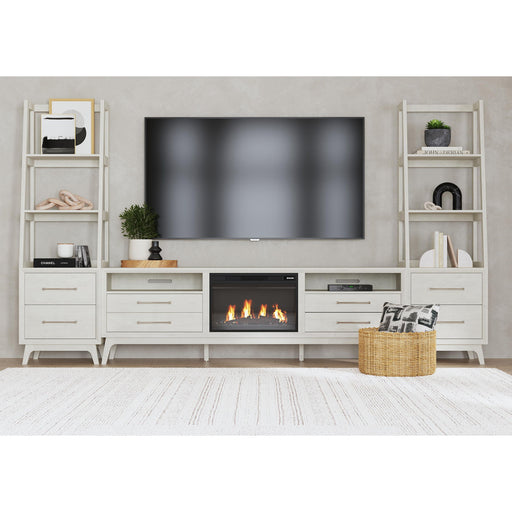 Elements InternationalThe Midway 80” TV Console with Firelight in White is a modern addition to your home’s décor. Its glossy white finish adds sleek style, while open s...