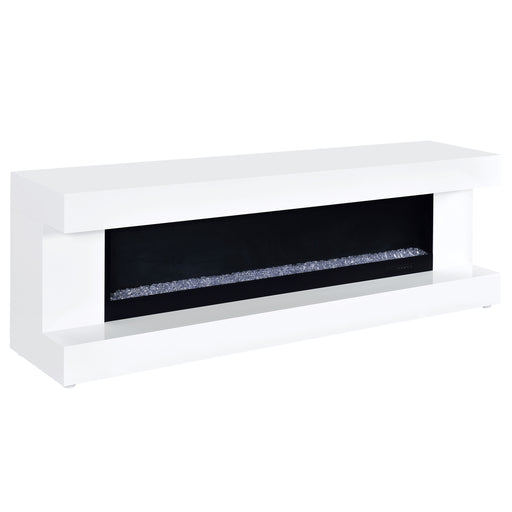 CoasterA TV stand with an integrated flame visualizer and bluetooth speaker delivers dramatic ambience without heat. Fully wrapped in a sleek white high g...