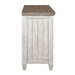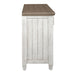 Accent your living room with the perfect vintage design, using this unique and stylish tile tv console. Crafted with rubberwood solids and cathedral white oak veneers, this piece accommodates most TVs and features an antique white finish with tobacco tops, three drawers, planked tops, full extension drawer glides for easy access to storage, two reversable/interchangeable decorative door panels, making this piece customizable, and is accented by timeless antiqued brass knob hardware. With today's modern technology in mind, users can enjoy the convenience of the open compartment areas and wire management provisions to hide those pesky wires from your electronics or gaming equipment.