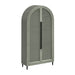 Accent your home with the bold presence of the Libra Bookcase in Sage. The versatile earth-toned finish complements various color palettes and décor styles, while the elegantly arched silhouette marks modern style. Elongated black pulls function as cabinet door handles that perfectly complement slightly tapered feet. Slatted cabinet door fronts open to reveal four shelves offering ample storage space for setting your favorite books, magazines, and/or work files, and the quality pine veneer enhances the piece’s durability. For a functional and quality addition to your home, the Libra Bookcase in Sage delivers in quality and design.
