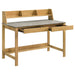 Writing desk brings a contemporary calm to your office ritual, led by a SmartTop™ high-pressure laminate top engineered to resist damage, moisture, and heat. A rubberwood frame and clean stretchers keep the profile steady as two drawers quiet the clutter, while the raised organizer shelf and lower shelf stage notebooks, mail, and bags. Slide out the side tray when you need extra landing space for a mouse or notes, then settle in with a laptop, lamp, and planner as the day moves from bright morning to late-night focus.