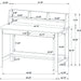 • Lower open shelf holds books and bags, helping a contemporary workspace stay clear