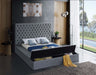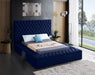 Extend elegance to the bedroom with this Bliss velvet bed. This bed has a rich look, with deeply tufted upholstery along its upper platform perimeter and headboard, ensuring that it is a good fit in modern bedroom themes. Storage rails and footboard are included to ensure maximum versatility, and the bed comes with slats, so you can use it without a box spring. The velvet fabric used in its design makes it easy to integrate alongside other furnishings.