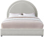 Get ready for compliments when you add this Milo boucle fabric bed to your space. It's upholstered head to foot in rich boucle fabric, so it's soft to the touch and regal to the eye. The star of the show is the bed's rounded headboard, which stretches out tall above you for a look that oozes regality and sophisticated charm. Acrylic legs give the bed a somewhat modern finish.