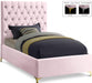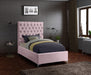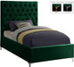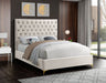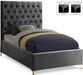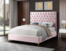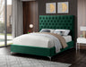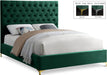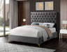 Revamp your bedroom space with this sumptuously crafted Cruz bed from Meridian furniture. The star of the show here is the headboard its tufted with deep button tufts that not only keep its thick padding in place and aloft, but also add a modern, textural look to your space. Sleek velvet upholstery feels luxuriously upscale to the touch, and the high headboard and the minimalist platform frame with metal feet add a timelessly contemporary silhouette to your space.