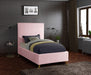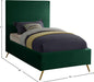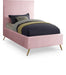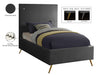 Embolden your bedroom space with this beautiful and colorful Jasmine Bed. A pop of stunning color and chic, sleek velvet upholstery set this bed apart as a distinctively elegant option for your bedroom sanctuary. The contemporary design meshes well with modern decor, making it the ultimate choice for the uber-modern home. Metal legs with a retro slant lend this bed a finished look. Because the bed requires no box spring or foundation, it offers a svelte, minimalist profile.