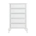 The Jesse 5-Drawer Chest is the perfect addition to your little ones bedroom! This vertical chest comes with five, spacious drawers; perfect for neatly storing away all of your belongings. Raised panel drawer fronts are accompanied by crystal-like drawer knobs, adding an extra element of style to this already stylish set. The classic white finish is easy to match with any existing decor. Bevel edges and arched cabriole feet complete the look of this transitional design.