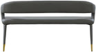 Enjoy extra seating space in your home with this Destiny bench. Its soft upholstery offers coziness while sitting, ensuring you and your guests are always comfortable. A rounded, open back provides additional comfort as well as style. Gold tipped upholstered legs give this bench an extra touch of style that complements any contemporary living space. Its long length guarantees that you ll always have extra space to seat family and friends who visit.