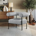 Modernize your home with this Blake accent chair. Featuring rich boucle fabric and a matte metal frame, its contemporary design is sure to catch the eye of all your house guests. Crafted from a mixture of iron and foam, this accent chair is sturdy enough to seat just about anyone. Its curved back provides a comfortable resting place for your spine, and its thick foam cushion gives you a plush place to sit.