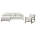 Elevate your seating arrangement with this modern accent chair, crafted to complement the comfort and style of contemporary interiors. Upholstered in soft, sand-toned bouclé fabric, it sits atop a solid wood frame finished in ash brown, delivering stability and a harmonious contrast in textures. Its plush, foam and premium blend fill seat and back cushions provide a supportive yet luxurious feel, making this chair an inviting retreat for relaxation or conversation.