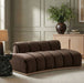 Innovative design meets soft velvet upholstery in the Jace velvet loveseat, creating a modern marvel that redefines comfort and style. Its sinuous curves form a sculptural masterpiece that defies convention. A dramatic design and rich velvet upholstery make this piece truly unforgettable.
