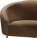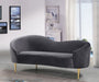 Get comfy while remaining chic in this elegant Ritz velvet loveseat. Plush-colored upholstery provides a soft texture that is pleasing to the senses, while its curved design offers a contemporary touch to your home furnishing. metal legs complement the loveseat's sophisticated color, creating a gallant piece anyone would be proud to display in their home.