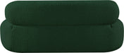 Discover timeless beauty with this Venti boucle fabric living room loveseat that's designed to elevate your interior space. This exceptionally crafted art-deco-inspired chair is part of the Venti collection and boasts an alluring curved shape to add elegance and refinement to your room. Upholstered in rich boucle fabric, the loveseat has a plush texture that's oh-so-cozy against the skin. The art deco styling makes it a real statement piece, whether you place it in your living room, home office, or your favorite reading nook.