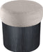 Strikingly modern, the Nimes velour fur fabric upholstered ottoman combines plush comfort with sleek design. The top is wrapped in luxurious velour fur fabric, offering a soft and inviting texture, while the cylindrical rich black wooden base provides a minimalist contrast. This versatile ottoman is perfect as extra seating, a footrest, or a stylish accent in any living space.